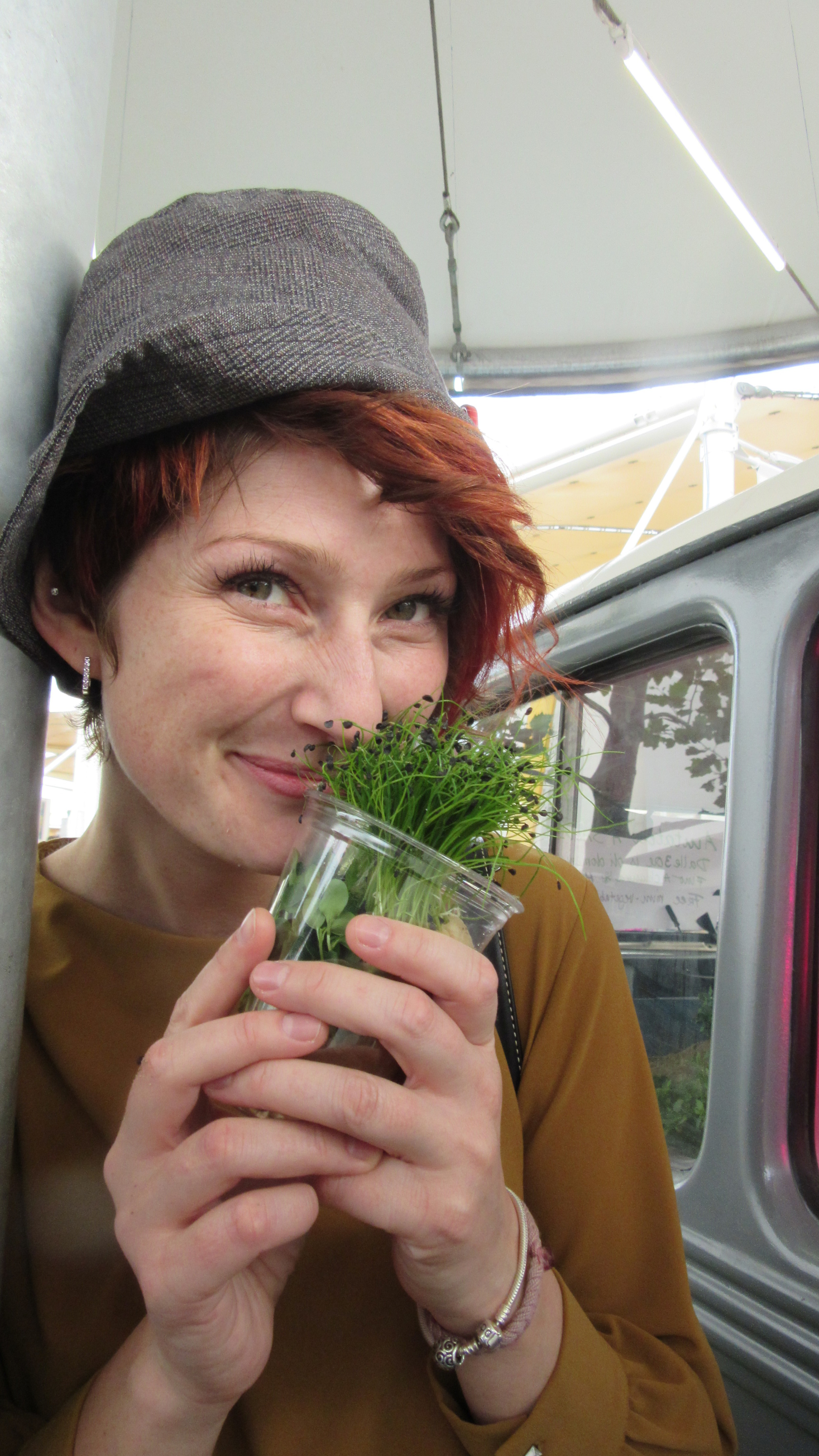 Binnen de laboratorium Jeep was het 'Good Food Landscape' te zien met een aangepast LED-verlichting systeem (Lemnis Oreon) en een micro-landschap met kruiden- en kiemgroenten (Koppert Cress).